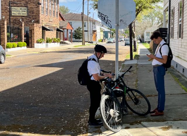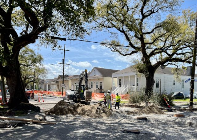 Street work in New Orleans is constant. We are sinking into the muck. The ancient city water system corrodes. Washington Avenue near Claiborne is currently closed to cars but I could push a bicycle on the sidewalk around the barriers.