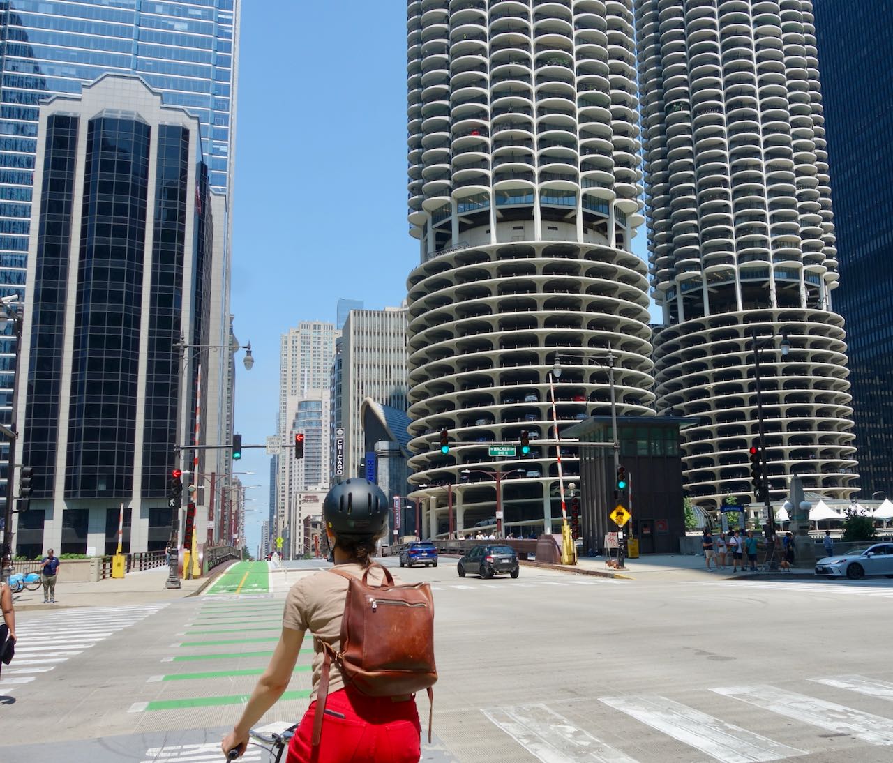 I left the green plastic suitcase with a clerk at the hotel’s ninth floor lobby then started cycling northbound on the left lane bike path on Dearborn Street.