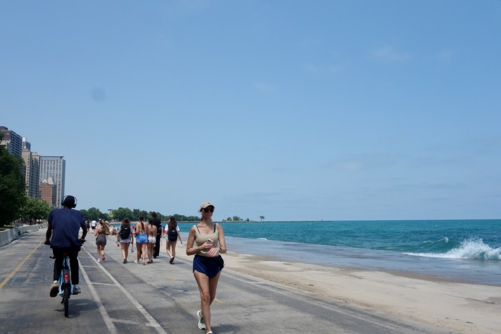 I eventually found my way to the lakefront bike path. In the summer downtown Chicago seems an actual beach town.