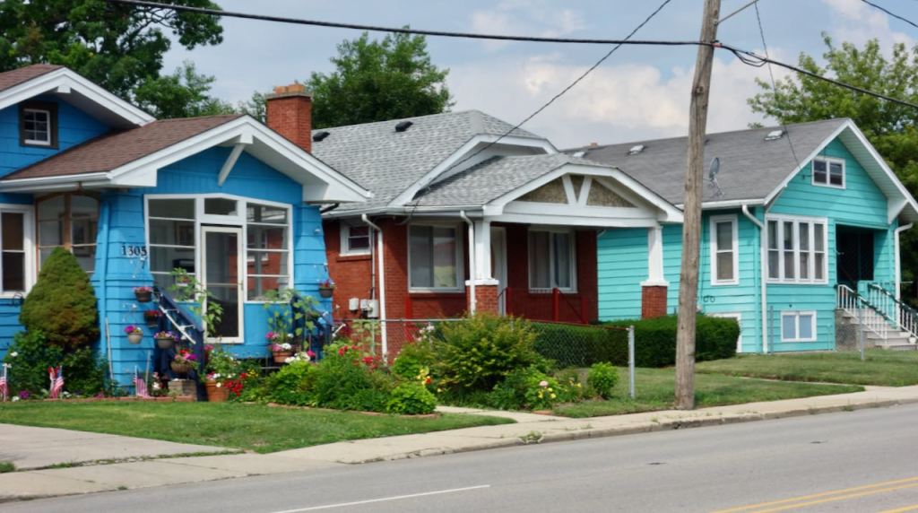 Near the Bean, these likely former factory houses have no side windows!