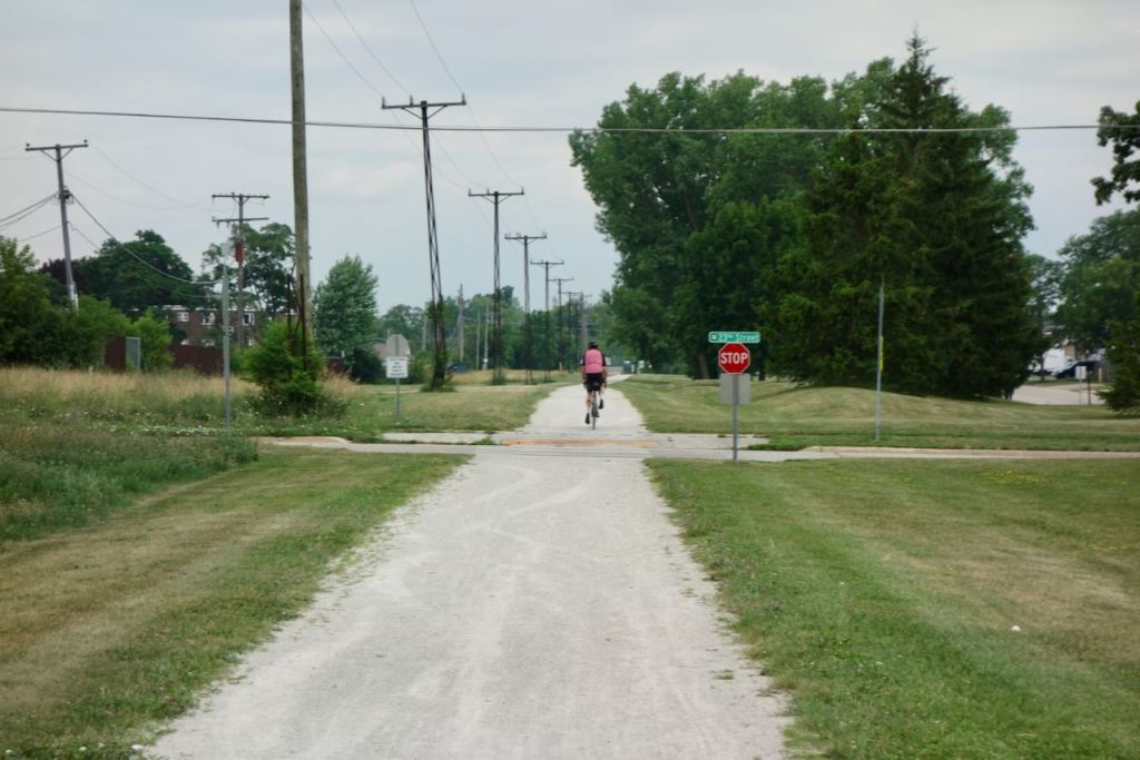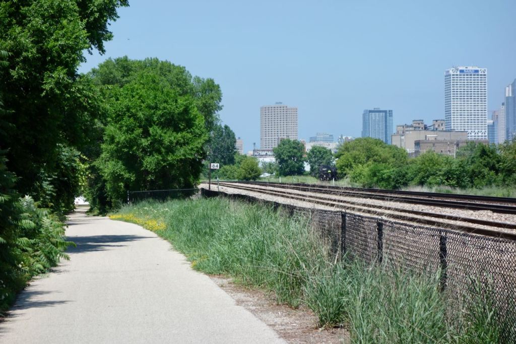 Biking the next day continued safe and peaceful although through less upscale neighborhoods. In the late 1940’s there were about six competing passenger railroads across the flat lakefront expanse between Chicago and Milwaukee, each with their own trackage. Today this offers opportunities for bike paths on former rail lines.