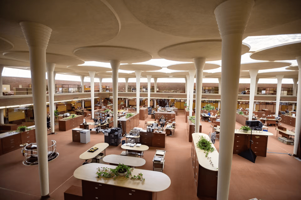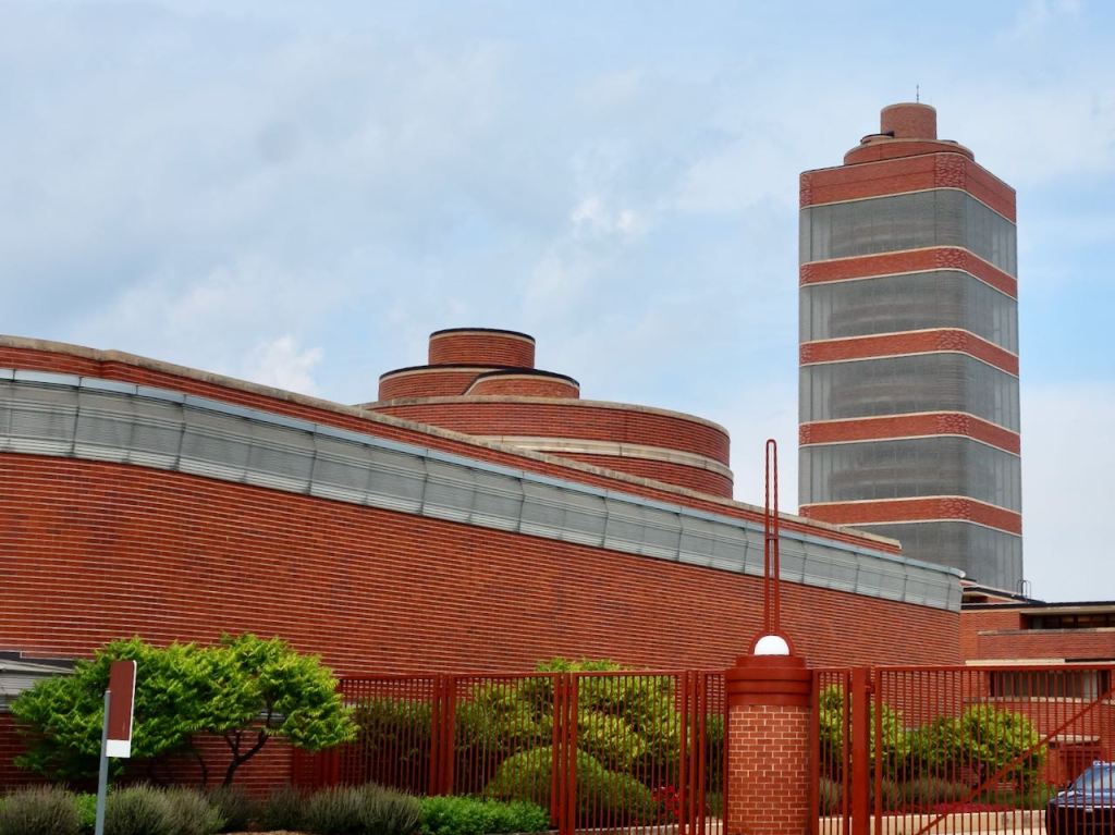 Racine is similarly industrial but also the home of Johnson Wax. I cycled by their headquarters in a blue collar neighborhood, its buildings designed by Frank Lloyd Wright in the 1930’s.