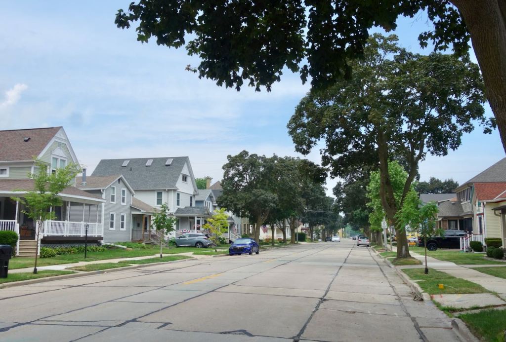 Nearing the downtown Amtrak station I cycled through Milwaukee neighborhoods.