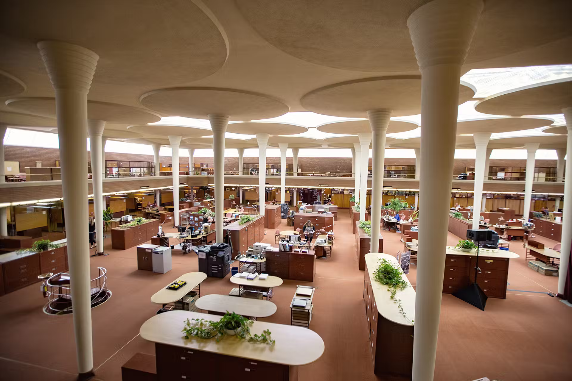 On an earlier trip here with Lyman we had toured the interior of the building to the left which contains the Great Workroom. This photo is from the internet.