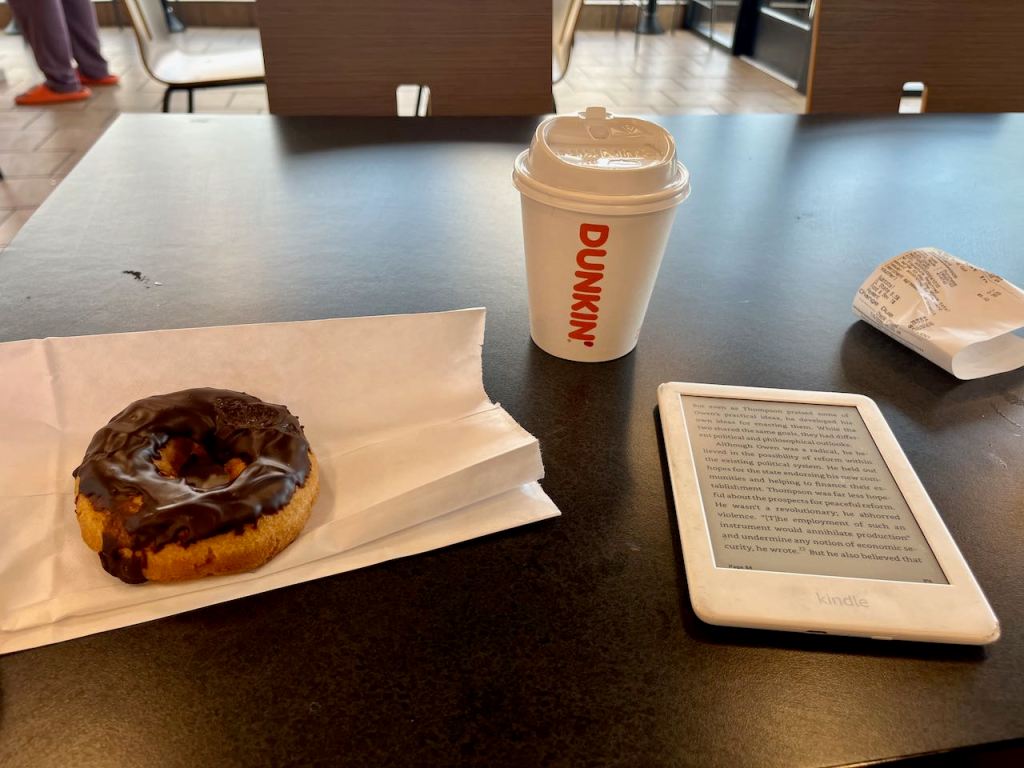 I like to cycle a bit before breakfast. After ten miles or so, in downtown Waukegan all I could find was Dunkin Donuts. I felt like I had eaten a brick.