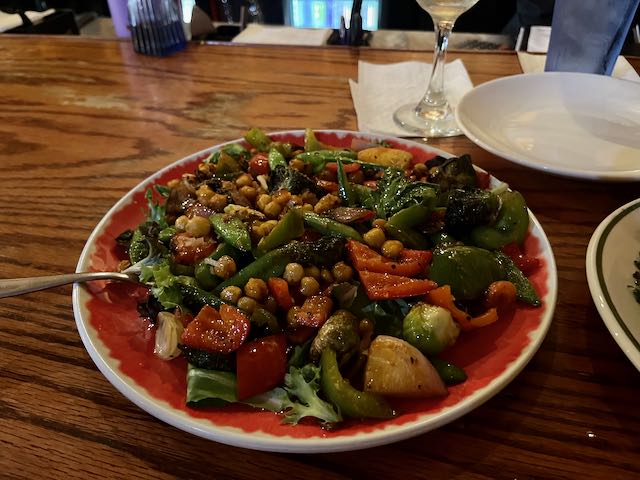 My two “tapas”were not snack size at all, almost too much food. Argentinian steak and brussels sprouts salad with chickpeas. Nice.