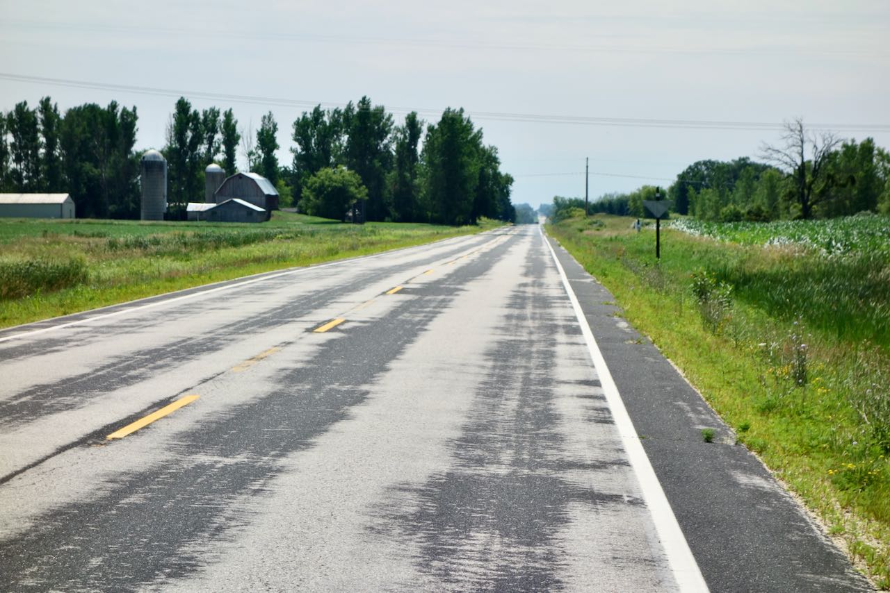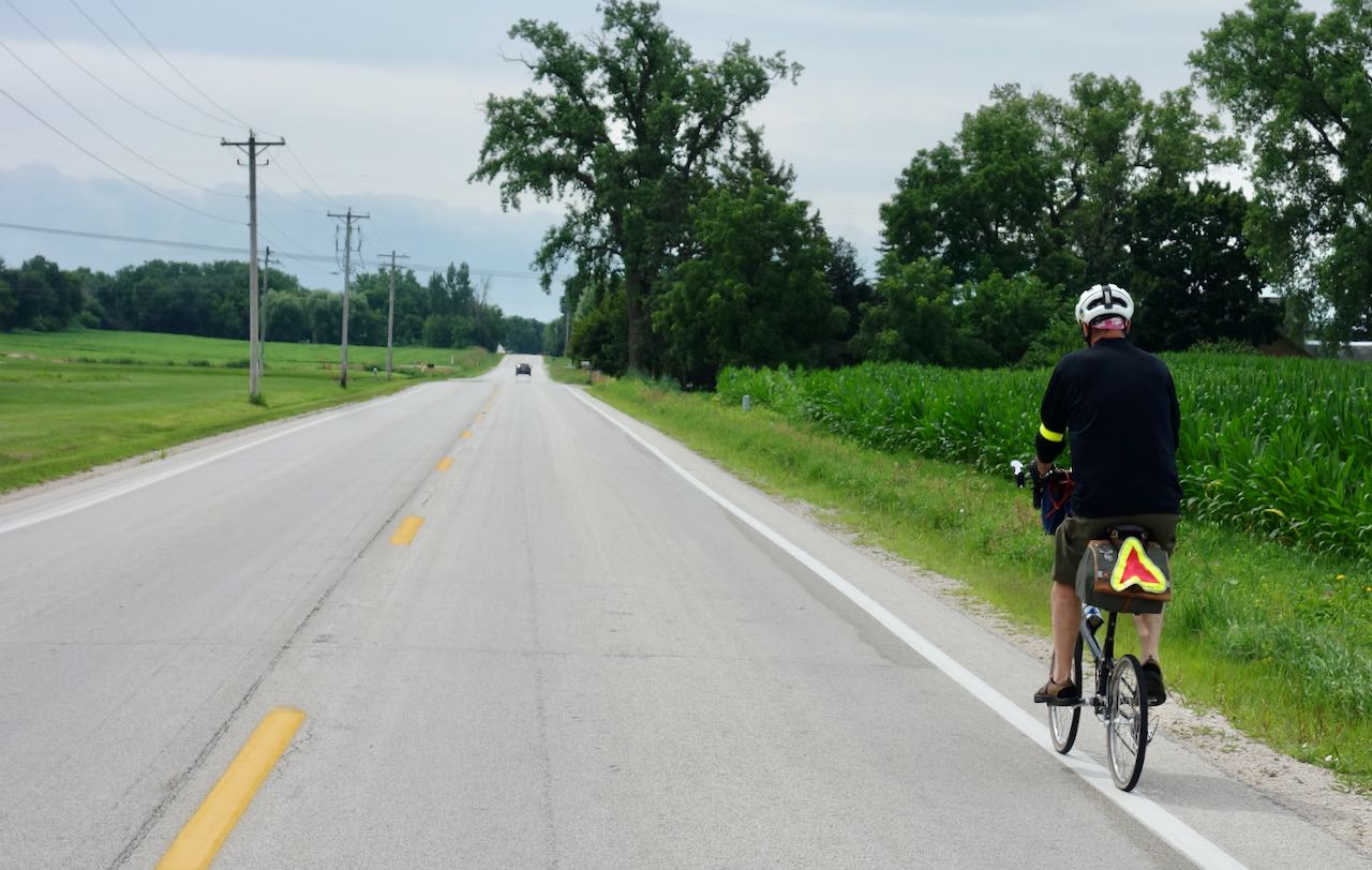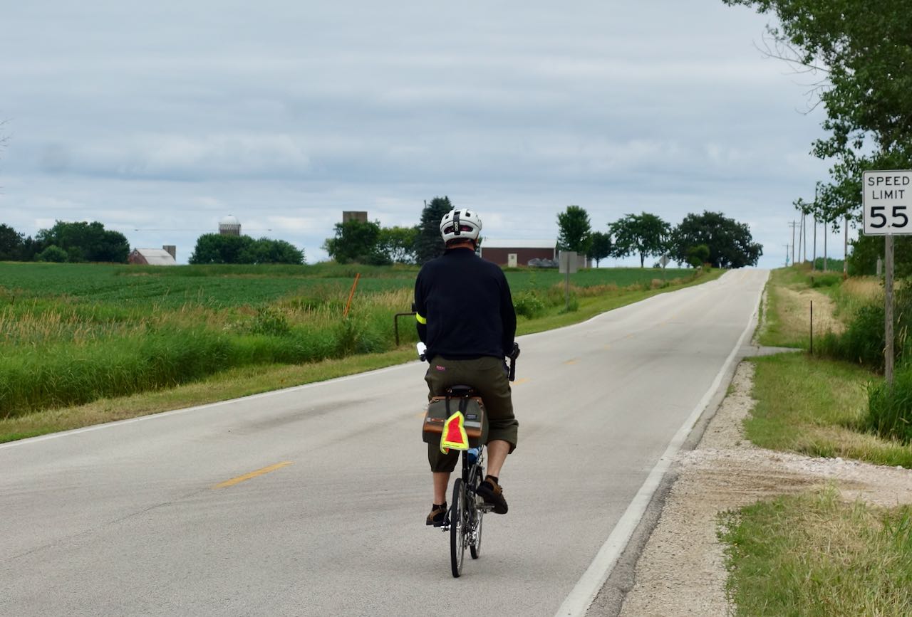 Eventually we cycled through cornfields on conventional roads with negligible car traffic.