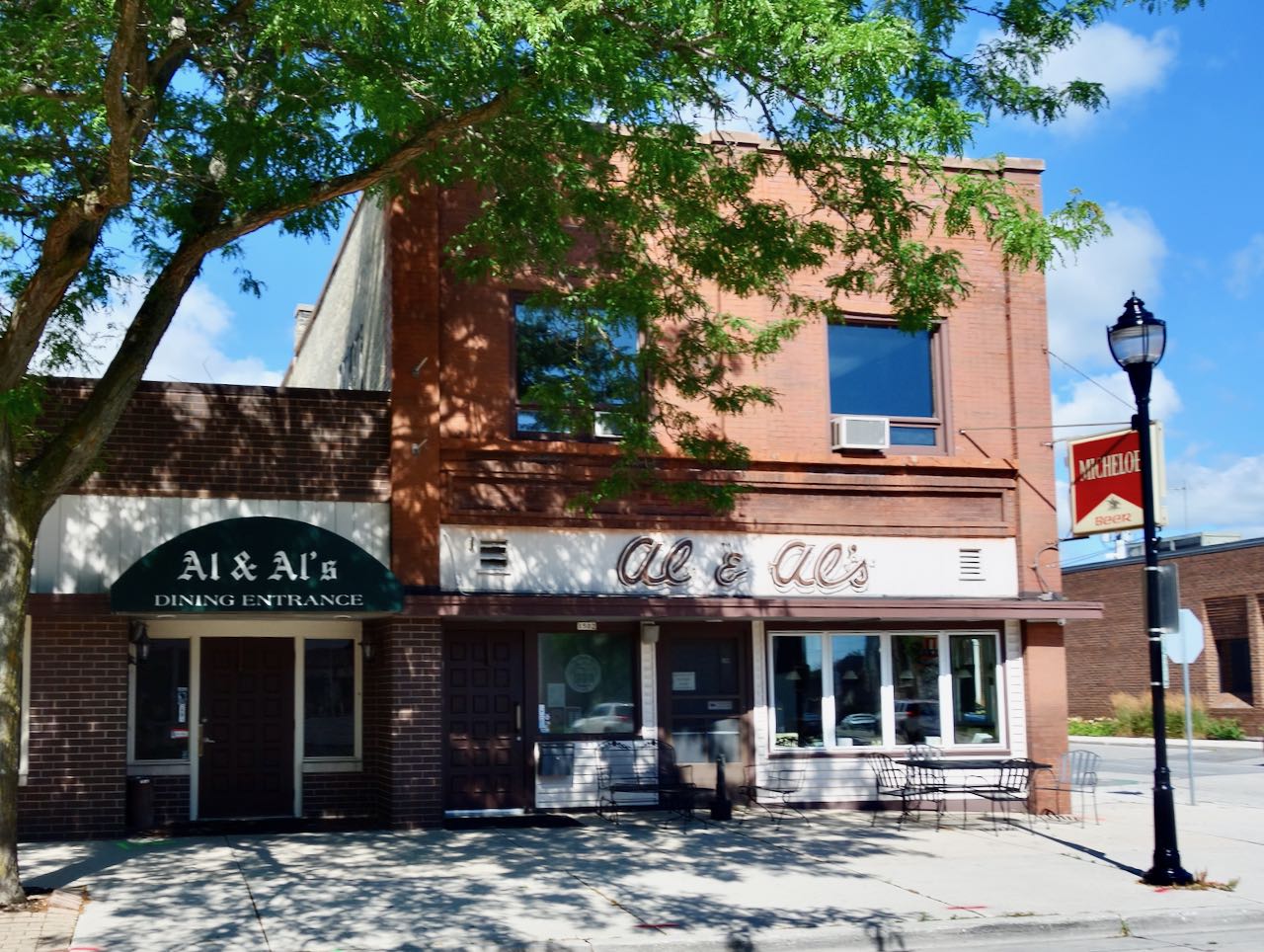 The City of Sheboygan’s website has fascinating detail about the importance of bratwurst (“brats”) and egregious errors in serving them, such as ketchup. Sauerkraut was also considered heretic. Brats should be fried, not grilled, and should be served on a square Sheboygan style hard roll, NOT a hot dog bun. That evening we cycled over to one of the recommended spots for brats; Al & Al’s on the south side; It was billed as a German restaurant and we took seats at the adjoining bar.