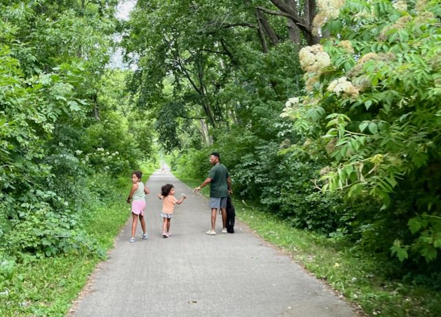 There was no trail. Lyman and I gently looped around on our bicycles, enjoying the morning but not knowing what to do next. As I circled back towards Main Street I saw a guy standing in the middle of S Fond Du Lac Ave waiving his arms around.
