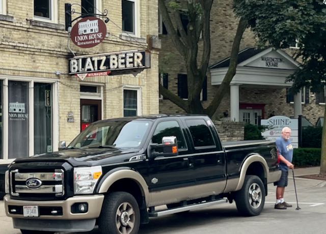 We stayed that evening in the town of West Bend WI (population 31,000) thirty-seven miles northwest of Milwaukee. The town seems thriving, wealthy even. New housing is being built around downtown. There are numerous manufacturers and finance companies based here. Wikipedia says the world’s largest maker of leather billfolds Amity Leather was in West Bend from 1915 to 1996.