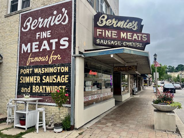 Ten miles into the ride we stopped for coffee (for me, oat milk latte, one pack sugar) in the lakefront town of Port Washington WI. The coffee house was next door to this place. Sausage seems a big deal in Wisconsin.