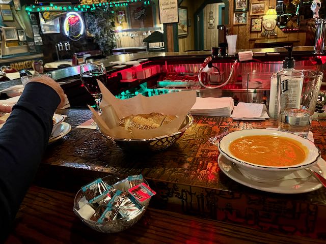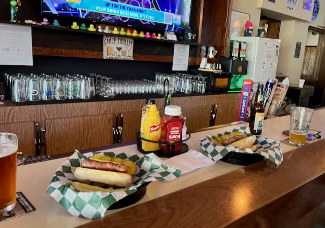 That day’s special was a single brat for $ 3.50. We got one each. They were fine; who doesn’t like a sausage? If you take the city’s website as gospel, Al & Al’s was breaking rules by serving them on hot dog buns. We considered these as appetizers and went on to order something else. Everyone at the bar was friendly but ultimately it was a locals bar and Lyman and I felt somewhat out of place.