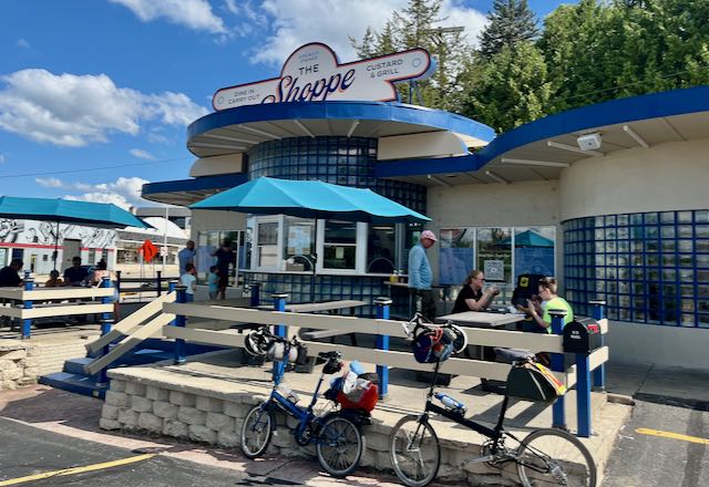 We stopped for what I call soft serve ice cream and they call custard. Vanilla with chocolate sauce and chopped nuts, please; hold the cherry and whipped cream.