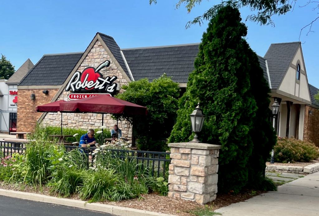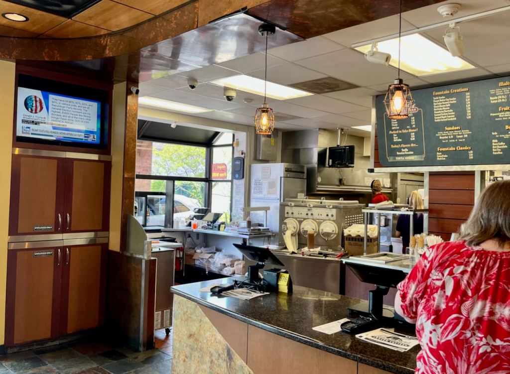 We later picnicked under a shade tree with homemade peanut butter and jelly sandwiches. Further on we found Robert’s Frozen Custard. Lyman had wanted a banana split. This ice cream parlor felt they had to have Fox News playing at the counter.