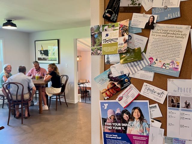 I love healthy but these ten or eleven dollar juices plus similarly expensive tea and coffee drinks were slowly and amateurishly prepared. Both our drinks tasted terrible! Many patrons were nattily dressed in country club attire. Among the fifteen cars in the parking lot, I saw one Ferrari and one Maserati, as well as various BMW’s and Mercedes’s. There were lots of posters about healthy lifestyles.