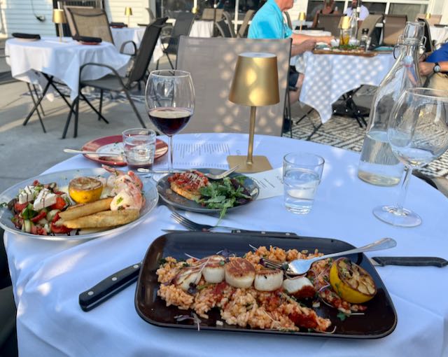 The Airbnb was an entire 1920’s house about a mile from downtown. We cycled back into town for dinner. In the South no one eats outside in the summer. In Oconomowoc Wisconsin at a place called Kavos the golden hour light was mesmerizing as we dug into Mediterranean style entrees.