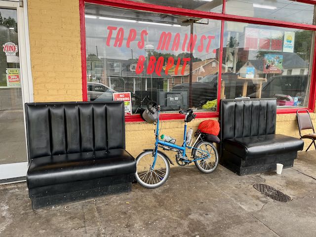 I really needed somewhere to sit down. Even in the South one does not see that many Black owned restaurants. At a former gas station in-town their door was unlocked but the guy said they were closed today because of a big catering job. At least I got to see their menu.