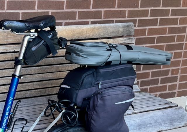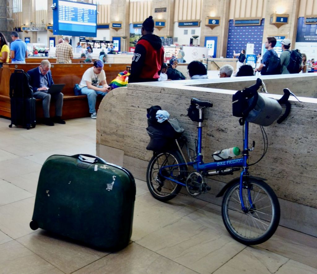 I love these trips but packing up the bicycle is a pain. I had to cycle to the mini-mart, retrieve my suitcase, then lug both to the station to disassemble the bicycle.