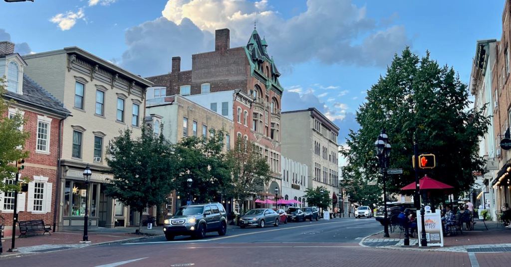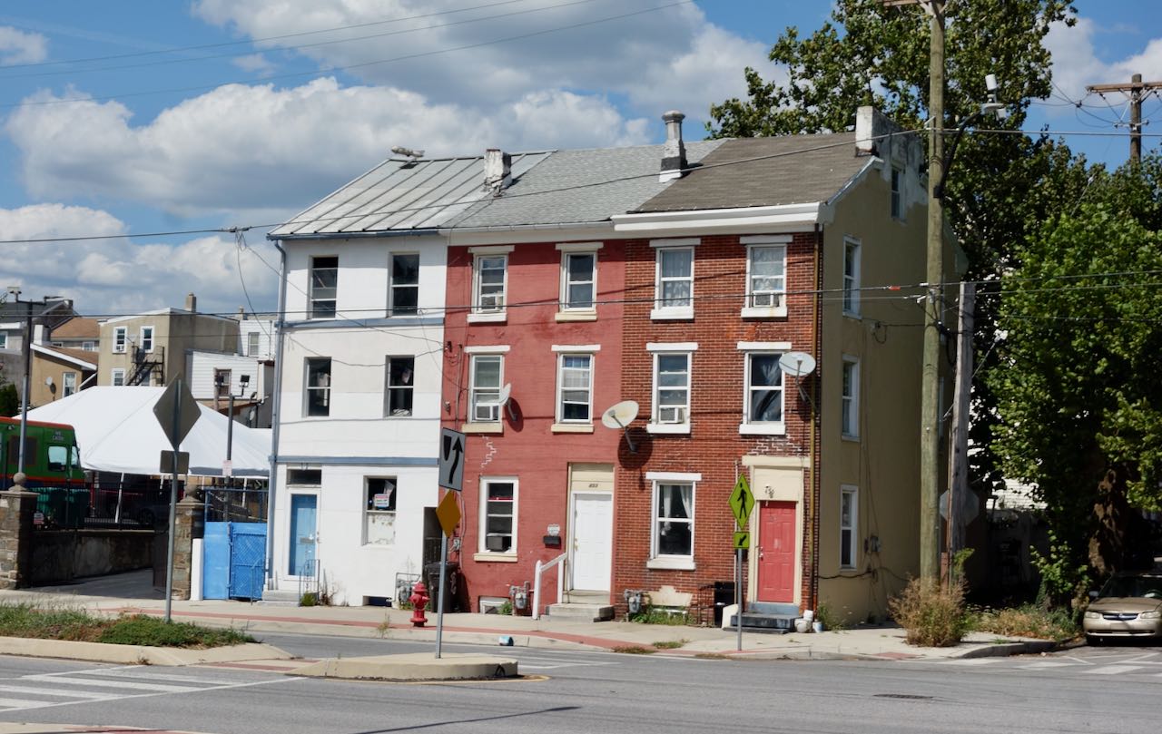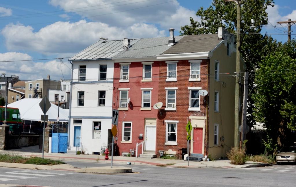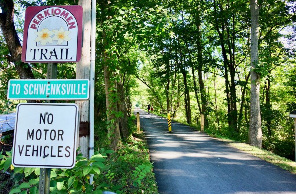 The trail passes alongside close-in cities like Norristown PA, with Philly style urban housing.