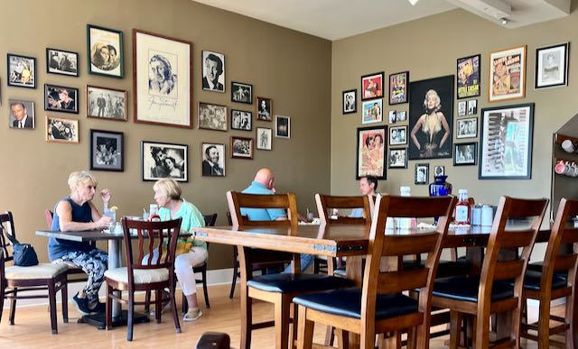 There were pictures of movie stars on the wall, plus in the upper right, Princess Diana, who, I guess, was something of a show biz star in her own right.
