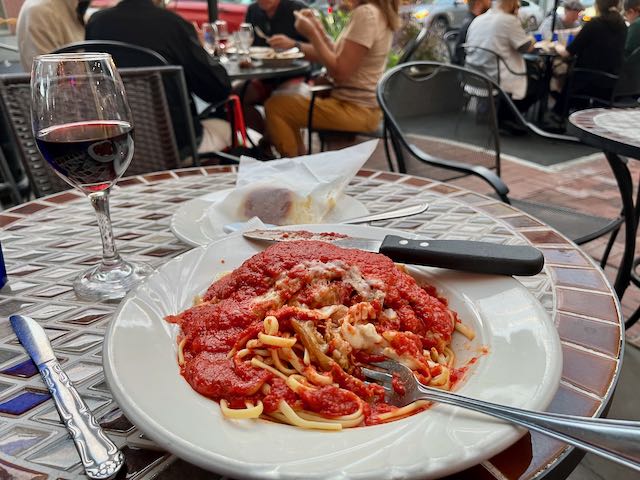 Dinner that evening, just down the street at Mama Nina, was disappointing eggplant parmesan. Mushy spaghetti.