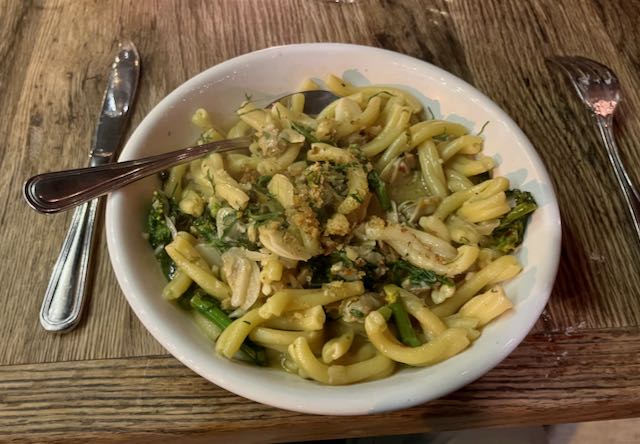 I walked down the block for dinner at somewhere called Little Nonnas. Philadelphia has great restaurants. Pasta and clams.
