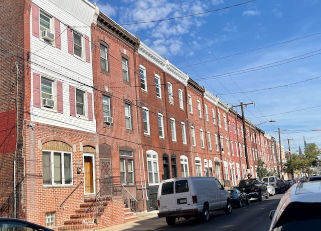 My flight home was not until one something the next day so I had a couple of hours that morning to cycle around Philadelphia, going to where South Philly neighborhoods cease and the Eagles and Phillies stadiums begin. Philadelphia has distinctive residential architecture.