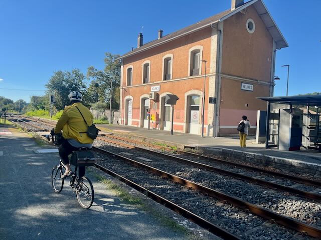 On arrival to the Bordeaux station (exactly on time) we put our bicycles together. They do allow you to wheel bicycles onto the slower regional trains. From that Bordeaux station we took such a train forty minutes east to the village of Velines, rolled our bicycles off, and pedaled into rural France.