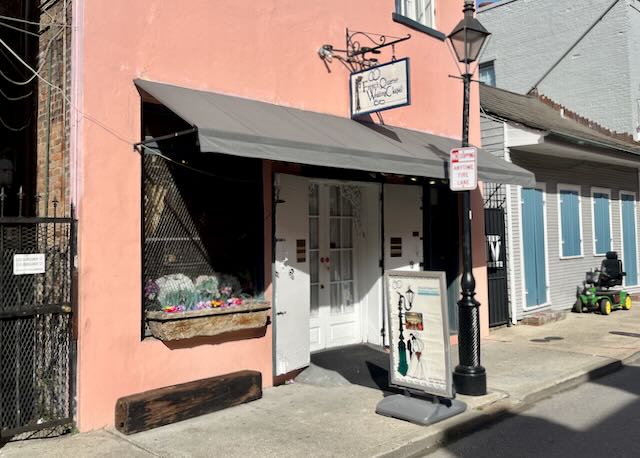 Last Sunday night Lyman and Gillian were having dinner with Tootie and me at our New Orleans condo when someone brought up the subject of marriage and whether they should do that. I take credit for suggesting in jest a place called French Quarter Wedding Chapel, which I pass almost daily cycling my usual bicycle loop out to City Park and the Lakefront. I assumed the “chapel” would sleazy. I could not have been more wrong.
